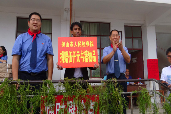 扶贫工作队关注山区学子,为村小学校捐赠了5000元的图书、体育用品,工作队员还给学生们上了一堂法治课。